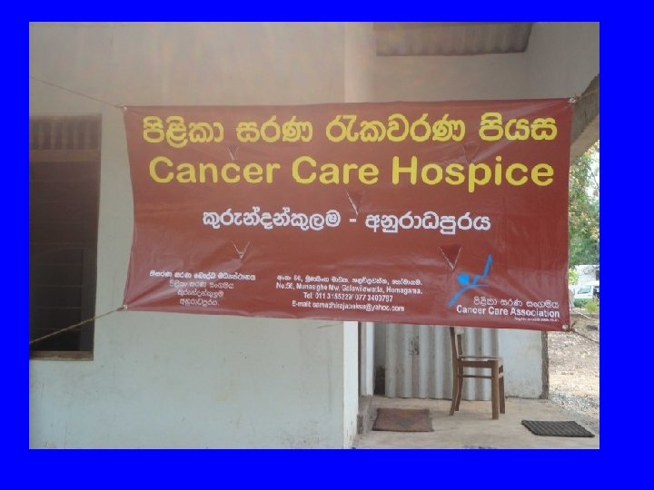 Pain Management at Cancer Hospitals • Most Cancer Patients present at Late Stages. • Govt. of Sri Lanka provides free Health Care. • Pain Management. – WHO method. – WHO Ladder is followed. – Opioid available in Cancer Hospitals. • Few hospices. • Training Programmes. – Need to be organized.