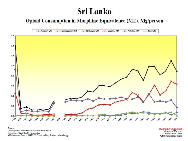 Mg/capita Consumption of Morphine, Sri Lanka, 1980 -2009 Sources: International Narcotics Control Board; World Health Organization population data By: Pain & Policy Studies Group, University of Wisconsin/WHO Collaborating Center, 2011