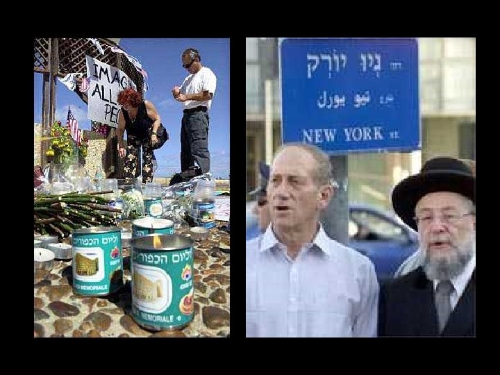 The world is in shock But amid the shock, rises the human instinct to do something. In Israel, within hours of the attack, citizens spontaneously line up to donate blood, light candles, grieve the dead, and fly the American flag. A national day of mourning is declared as all Israeli flags are lowered to half mast, in respect and sympathy for the American tragedy. The Israeli government is among the first to offer a search and rescue team to help with the rescue efforts. Streets in Tel-Aviv and Jerusalem are renamed “Pentagon Rd. ” and “New York St. ”.