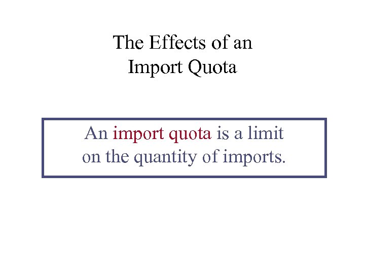 The Effects of an Import Quota An import quota is a limit on the quantity of imports.