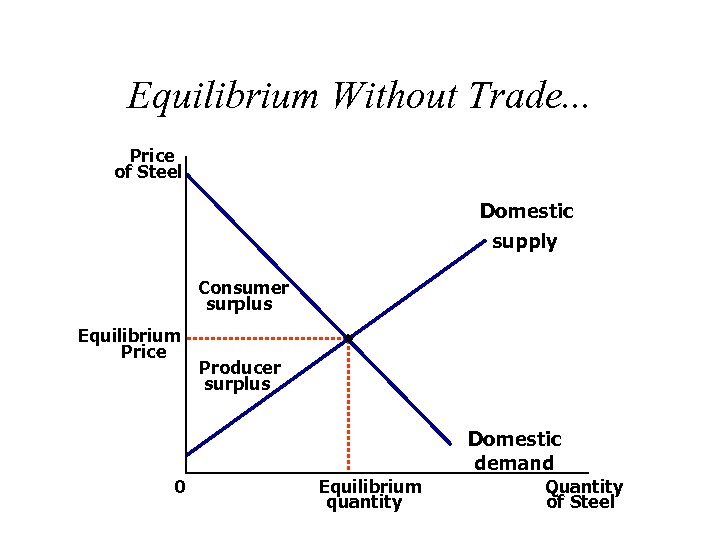 Equilibrium Without Trade. . . Price of Steel Domestic supply Consumer surplus Equilibrium Price Producer surplus Domestic demand 0 Equilibrium quantity Quantity of Steel