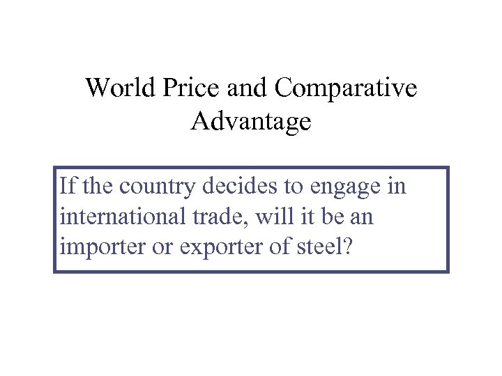 World Price and Comparative Advantage If the country decides to engage in international trade, will it be an importer or exporter of steel?