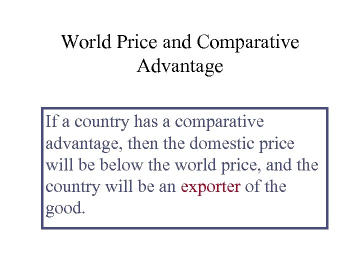 World Price and Comparative Advantage If a country has a comparative advantage, then the domestic price will be below the world price, and the country will be an exporter of the good.