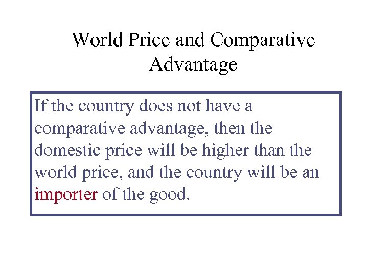 World Price and Comparative Advantage If the country does not have a comparative advantage, then the domestic price will be higher than the world price, and the country will be an importer of the good.