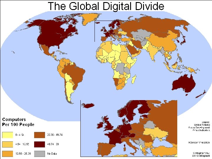 Society - Global digital divide • The global digital divide is a term used to describe: – “great disparities in opportunity to access the Internet and the information and educational/business opportunities tied to this access … between developed and developing countries” Lu, Ming-te (2001). Digital divide in developing countries. Journal of Global countries Information Technology Management (4: 3), pp. 1 -4. • Retrieved from: http: //en. wikipedia. org/wiki/Global_digital_divide