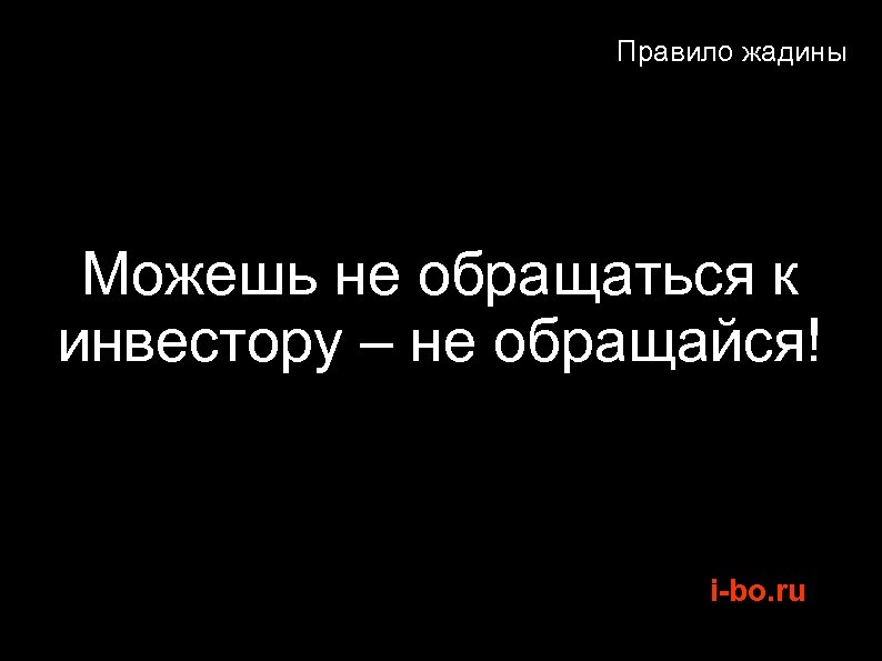 Правило жадины Можешь не обращаться к инвестору – не обращайся! i-bo. ru