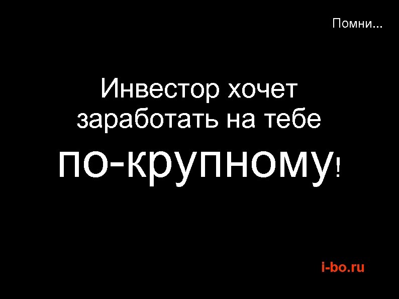Помни. . . Инвестор хочет заработать на тебе по-крупному! i-bo. ru