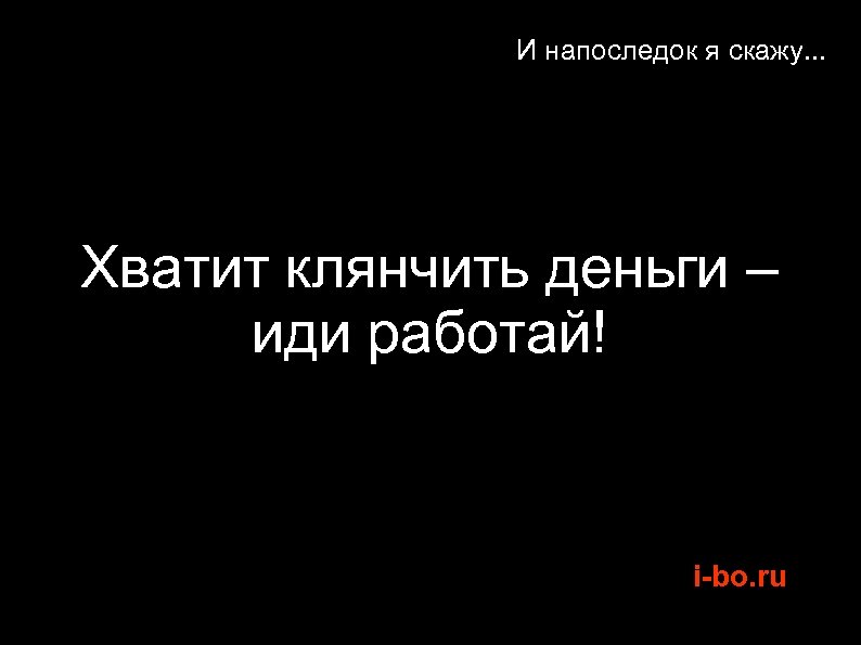 И напоследок я скажу. . . Хватит клянчить деньги – иди работай! i-bo. ru