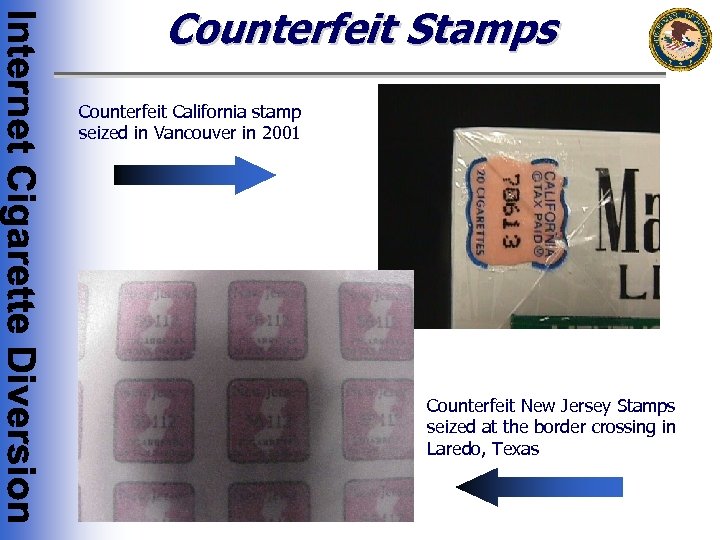 Why the Counterfeit Good/Stamps Statutes are Violated • There have been a number of investigations that have identified cigarette traffickers dealing in counterfeit cigarettes • The counterfeited cigarettes are often premium brands, such as Marlboro or Newport, and require the counterfeiters and traffickers to deal in goods bearing counterfeit marks • Sometimes, to create the additional appearance of legitimacy, the cigarette traffickers will also stamp the cigarettes with counterfeit tax stamps; this is done to further mislead the consumer into believing that he/she is purchasing a genuine product • Many times in which the cigarette traffickers offer cartons of cigarettes at very low prices (e. g. under $14 -15), the cigarettes are counterfeit • Those involved in counterfeit product evade Federal as well as State excise taxes