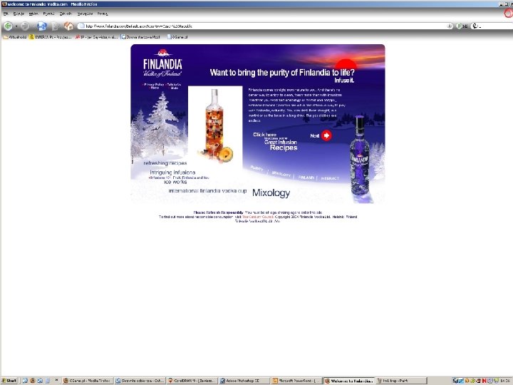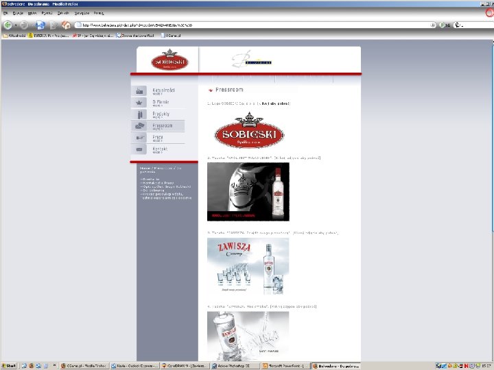 4. Formy reklamy internetowej wykorzystywane w branży alkoholowej Ustawa o wychowaniu w trzeźwości i przeciwdziałaniu alkoholizmowi zezwala na prowadzenie niepublicznych form marketingu alkoholi. Tym samym tego rodzaju marketing może być prowadzony za pomocą komunikacji indywidualnej, np. poprzez e-maile z materiałami reklamowymi do odbiorców, którzy zadeklarowali chęć ich otrzymywania lub strony firmy na którą wchodzi się po zadeklarowaniu ukończenia 18 lat.