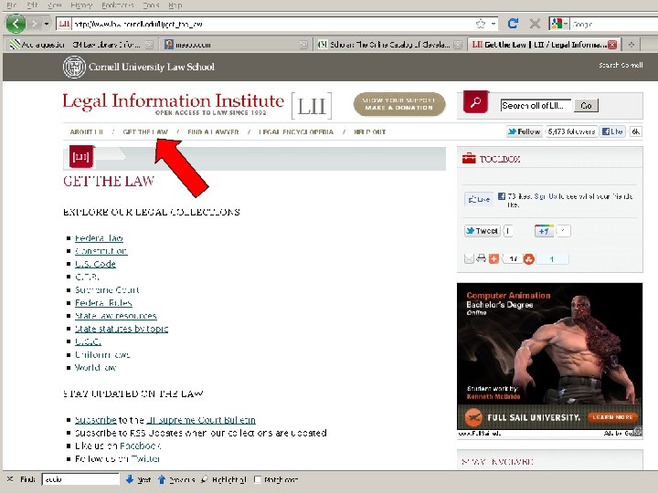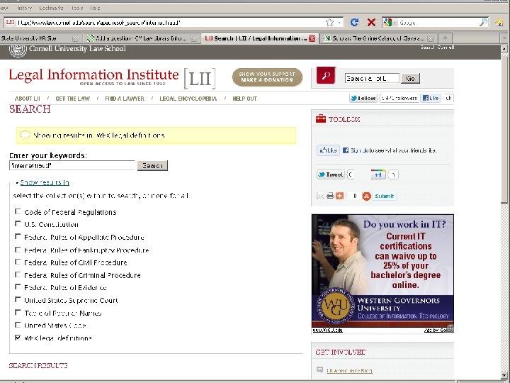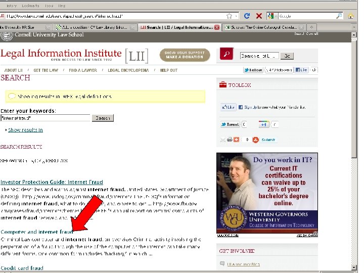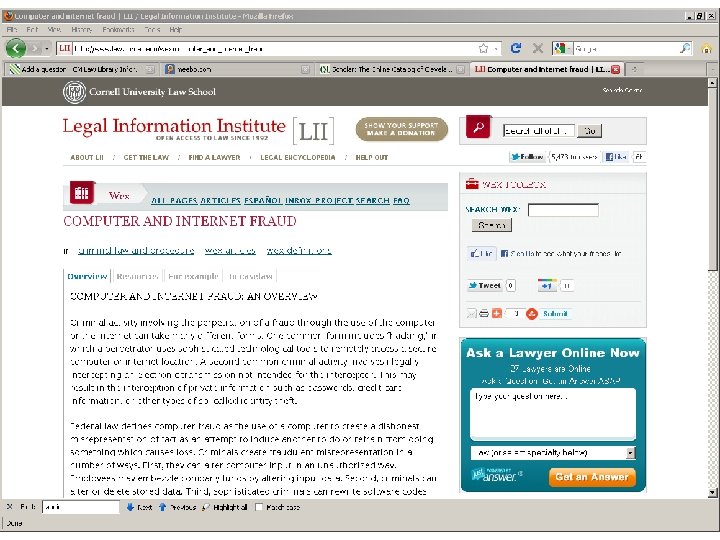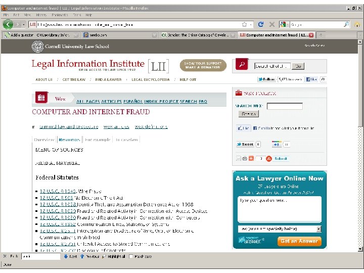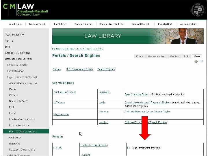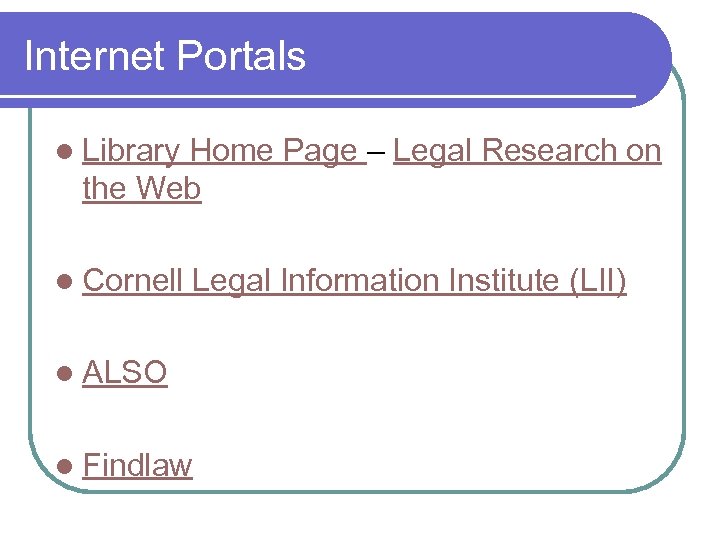 Internet Portals l Library Home Page – Legal Research on the Web l Cornell Legal Information Institute (LII) l ALSO l Findlaw