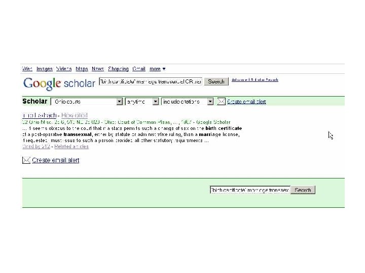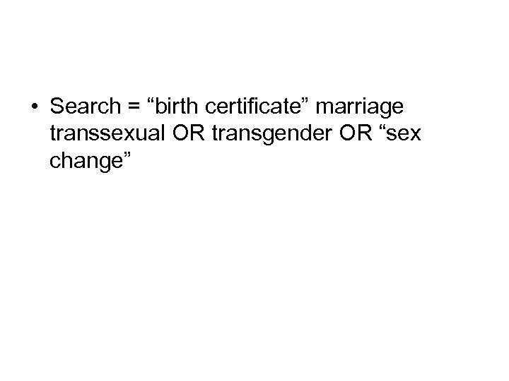 • Search = “birth certificate” marriage transsexual OR transgender OR “sex change”