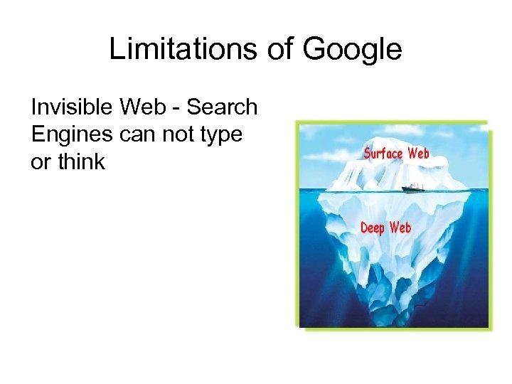 Limitations of Google Invisible Web - Search Engines can not type or think