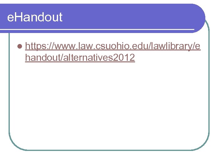 e. Handout l https: //www. law. csuohio. edu/lawlibrary/e handout/alternatives 2012