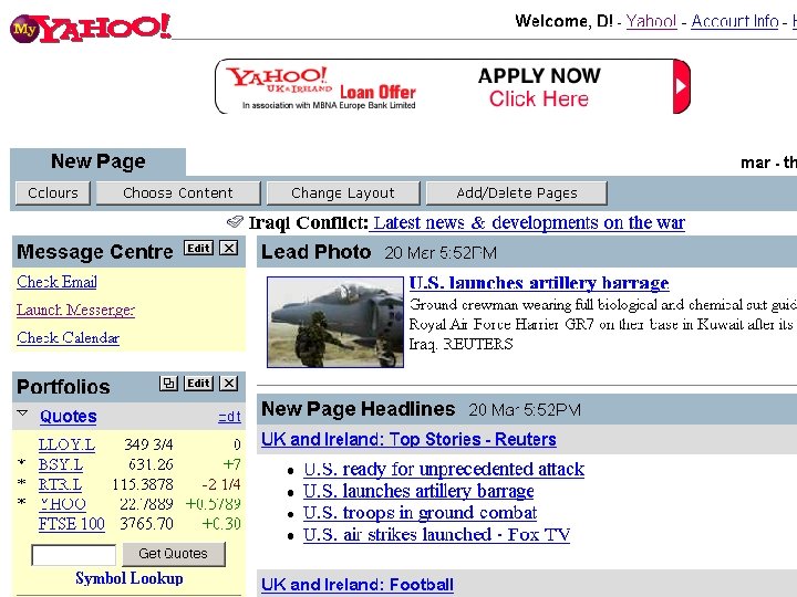 Web Page Static HTML hand coding HTML Tag Editors HTML, Forms, Client Side Scripts WSIWYG & Management Tools Distributed Authoring Web Site Dynamic / Database SQL & Perl/PHP/ASP CMS Authoring & workflow Web Services Portals & Personalization “My Library” Objects - XML Portals & Portlets Web Services XML, SOAP