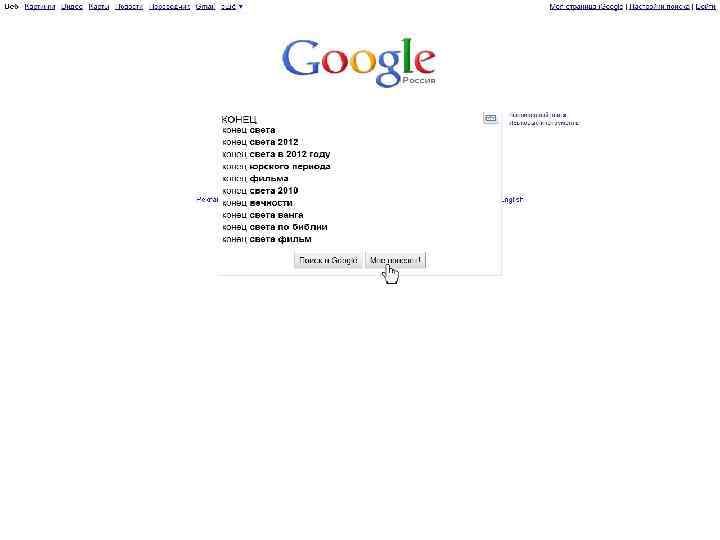 Апорт www. aport. ru Поисковая система Апорт появилась в интернете в 1996 году. В 2000 году была официально представлена новая версия – «Апорт 2000» . Поиск в ПС производится в таких сегментах интернете, как web-сайты, рефераты, товары, работа, знакомства, музыка, новости, энциклопедия «Кругосвет» , а также в собственном каталоге.