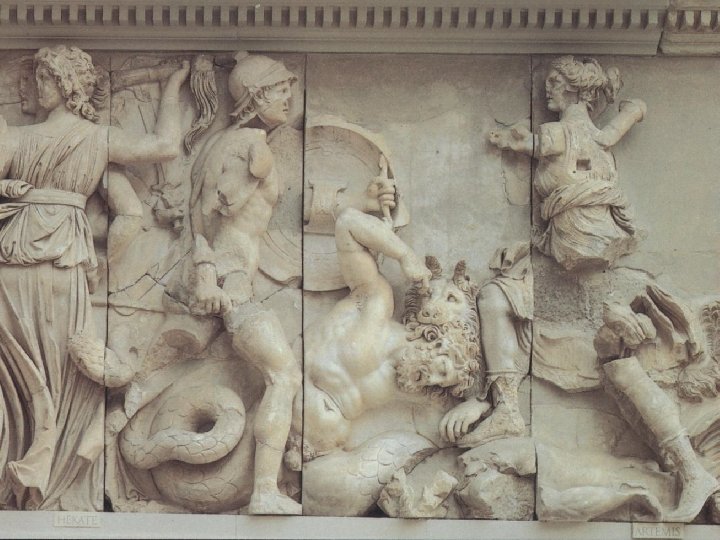 War in Heaven Gigantomachy (Battle of the Giants) u Giants = half-human, half-serpent u Went up to heaven to fight against Zeus and the gods u Defeated in heaven and cast down to earth n n