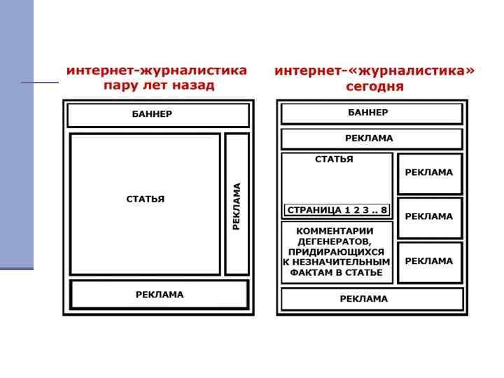 Інтэрнэт уяўляе сабою глабальны сродак камунікацый, якое забяспечвае абмен тэкставай, графічнай, аўдыё- і відэаінфармацыяй і доступ да анлайнавых службаў без тэрытарыяльных і нацыянальных меж. n n У ліку асноўных асаблівасцяў інтэрнэту можна адзначыць наступныя: даступнасць (24 гадзіны ў суткі, 7 дзён у тыдзень); інтэрактыўнасць; магчымасць месцавання вялікай колькасці інфармацыі (уключаючы графіку, гук, відэа, спецэфекты); аператыўнасць распаўсюду і атрыманні інфармацыі. У інтэрнэце прадстаўлены электронныя версіі тэле-, радыё- і друкаваных сродкаў масавай інфармацыі. Такім чынам, тут прысутнічае ўся шматстатнасць журналісцкіх жанраў.