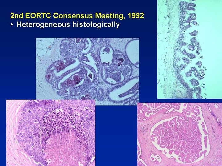 E-Cadherin • • 17 of 28 cases of indeterminate CIS (61%) E-cadherin heterogeneous Jacobs TW. Am J Surg Pathol 2001; 25: 229 -36 • 23 of 50 indeterminate CIS = ductal or lobular on immunoprofile In 27 IHC not typical of DIN or classic LIN Bratthauer GL et al. Hum Pathol. 2002; 33: 620 -7 • • • Group of lesions with overlapping morphological & IHC profile At present, regard as combined LCIS & DCIS because of the ? bilateral risk & precursor risk? respectively