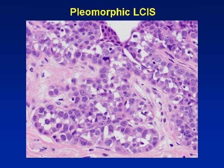 Lobular in Situ Neoplasia • • Follow-up of 39 of 48 patients 0. 5% of 10, 542 benign breast biopsies Higher risk with LCIS (9 x) Lower risk with ALH (4 -5 x) Page DL. Human Pathol. 1991; 22; 1232 -1239