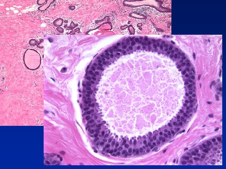 Columnar alteration with prominent snouts & secretions (CAPSS) • CAPSS in 42% of 100 consecutive bxs for microcalcifications • Calcifications in CAPSS in 74% Fraser JL et al. Am J Surg Pathol. 1998; 22: 1521 -7