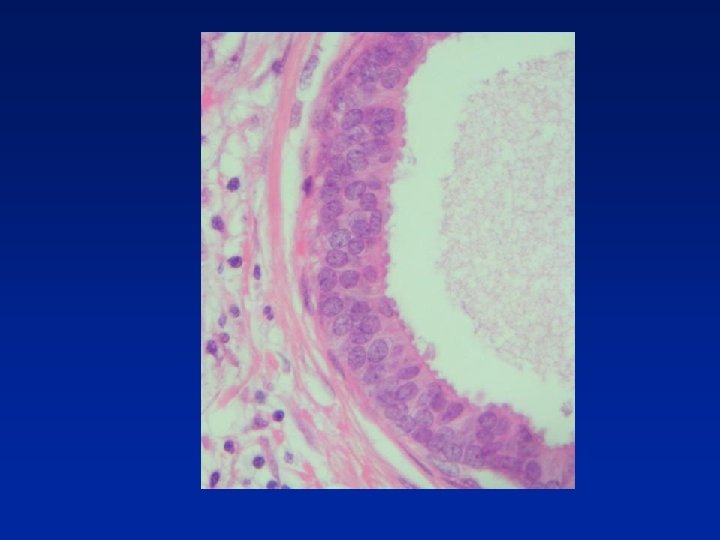 Columnar Cell Change • Columnar epithelial cells (1 or 2 cell depth) line • • • TDLU, often mildly dilated Uniform, ovoid nuclei Perpendicular to basement membrane Cytologically bland Mitotic figures rare Apical snouts often present Secretions may be present in lumen with Ca 2+