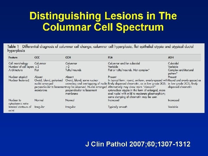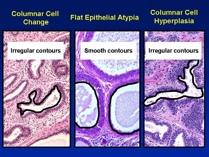 Present Terminology • Columnar cell change • Columnar cell hyperplasia • Flat epithelial atypia