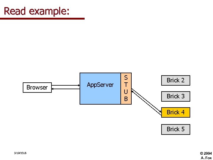 Read example: Browser App. Server S T U B Brick 2 Brick 3 Brick 4 Brick 5 3/19/2018 © 2004 A. Fox