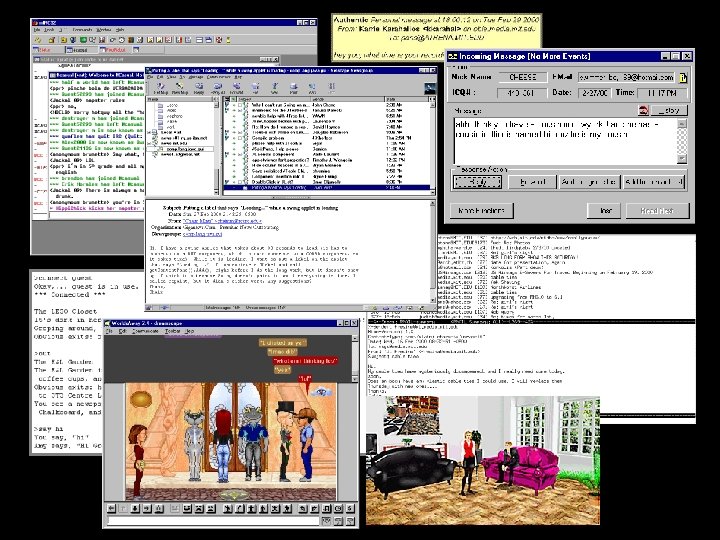 Chat Circles - 1999 Viégas, F. , & Donath, J. (1999) Chat Circles. Sig. CHI 1999. Donath, J. , & Viégas, F. (2002) The chat circles series: explorations in designing abstract graphical communication interfaces. Designing Interactive Systems (DIS) London, England.