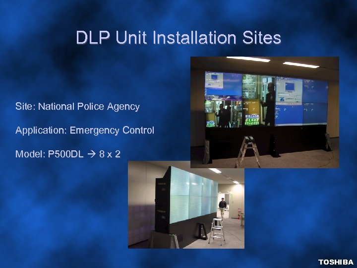 DLP Unit Installation Sites Site: National Police Agency Application: Emergency Control Model: P 500 DL 8 x 2 TOSHIBA