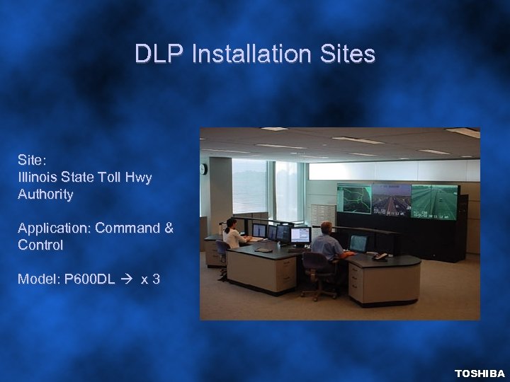 DLP Installation Sites Site: Illinois State Toll Hwy Authority Application: Command & Control Model: P 600 DL x 3 TOSHIBA