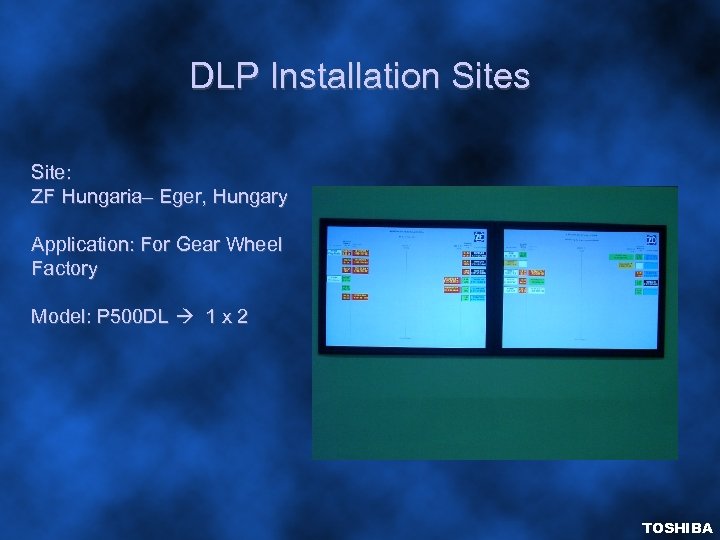 DLP Installation Sites Site: ZF Hungaria– Eger, Hungary Application: For Gear Wheel Factory Model: P 500 DL 1 x 2 TOSHIBA