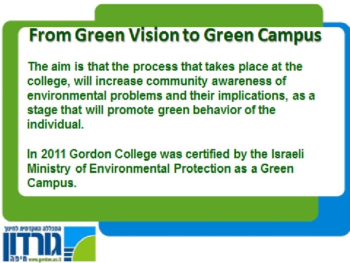 INVOLVEMENT IN THE COMMUNITY Mentoring Ethiopian Children in Pardess Hana • In partnership with the Federation of Jewish Communities of Miami, Gordon College of Education is working in three elementary schools strengthening the academic learning skills of 40 Ethiopian children. • Finding jobs for our Ethiopian graduates by integrating them into this program.