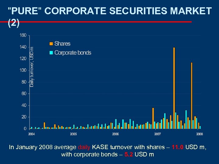 "PURE" CORPORATE SECURITIES MARKET (2) In January 2008 average daily KASE turnover with shares – 11. 0 USD m, with corporate bonds – 5. 2 USD m