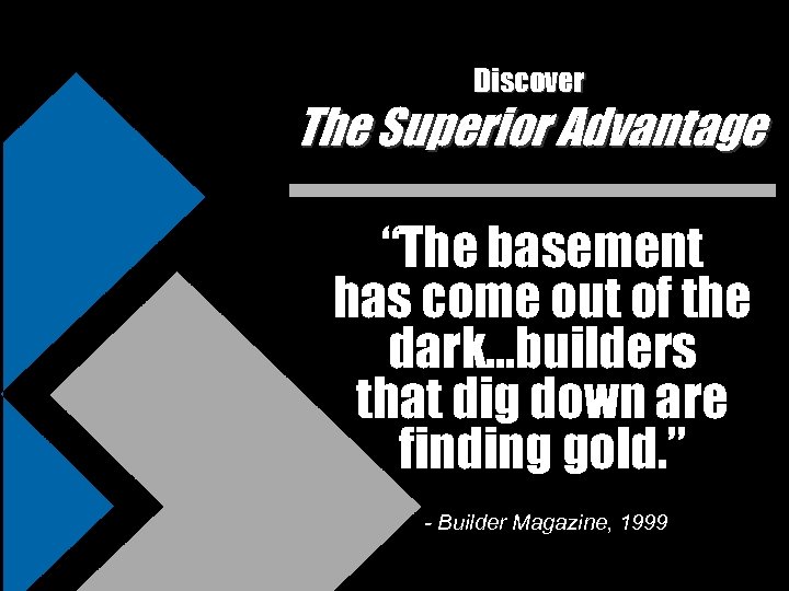 Discover The Superior Advantage “The basement has come out of the dark…builders that dig down are finding gold. ” - Builder Magazine, 1999