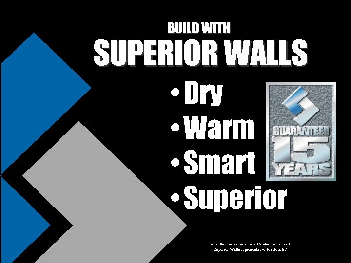 BUILD WITH SUPERIOR WALLS • Dry • Warm • Smart • Superior (See the limited warranty. Contact your local Superior Walls representative for details. )