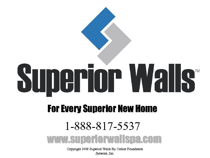 For Every Superior New Home 1 -888 -817 -5537 www. superiorwallspa. com Copyright 2009 Superior Walls By Collier Foundation Systems, Inc.