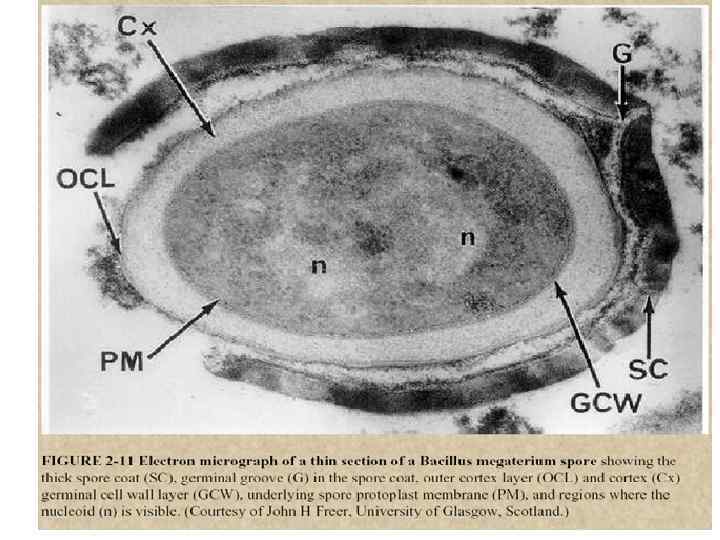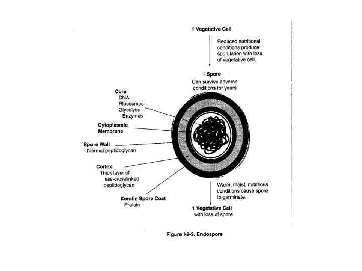 ENDOSPORES (spores) Spores are small spherical or oval bodies formed within the cell. The spore protects bacteria and withstand boiling, chemical treatments and radiation Some microorganisms, principally rodshaped (bacilli and clostridia), are capable of sporulation. These include the causative agents of anthrax, tetanus, gas gangrene, botulism Special Auesky staining procedures are used to Identify spore