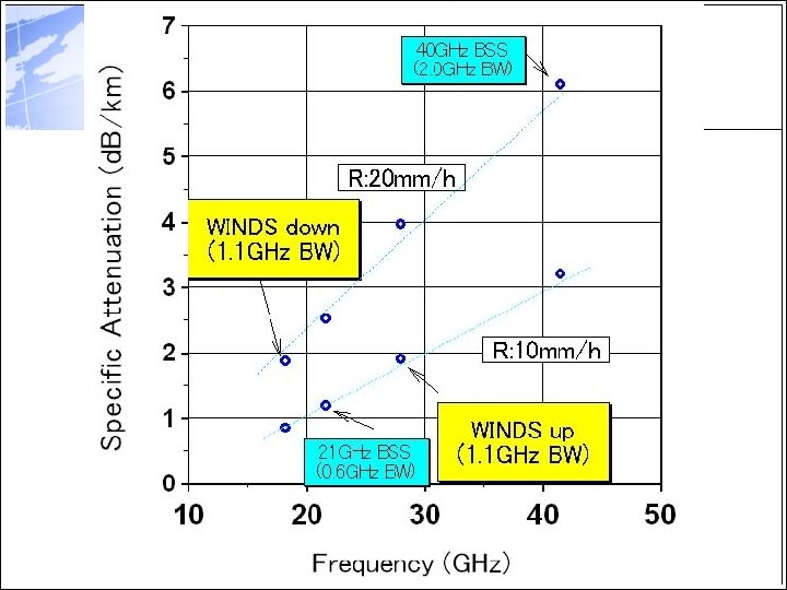 Japanese Ka-Band Sat. Com Projects Parameters WINDS 21 GHz BSS Frequency Up: 27. 5 -28. 6 Up: TBD (GHz) Dn: 17. 7 -18. 8 Dn: 21. 4 -22. 0 Band Width 1. 1 0. 6 (GHz) Polarization Fixed: Linear(V, H) TBD APAA: Linear (V) Orbit GEO 143 deg. E TBD (or 144. 5 deg. E)