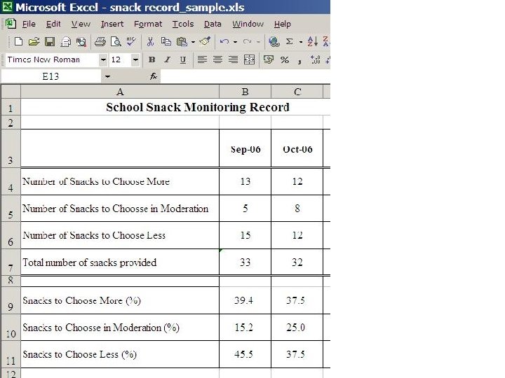School Snacks Monitoring Checklist