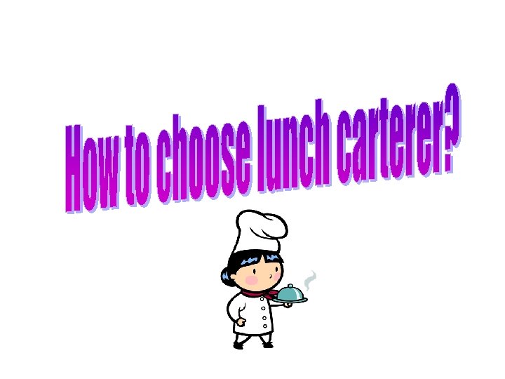 Choosing of Lunch Caterer – Selection Factors Taste Nutrition Price Hygiene Environmentalfriendly Health Promotion Follow-up ? ? ? Reimbursement Payment ? ? ?