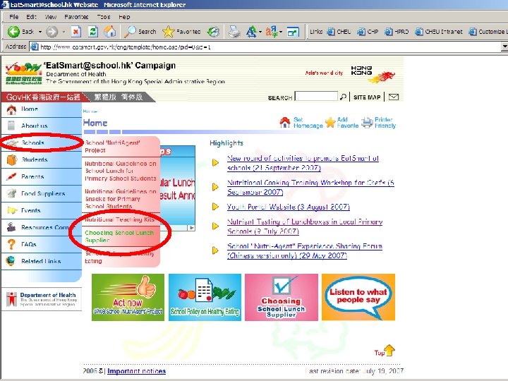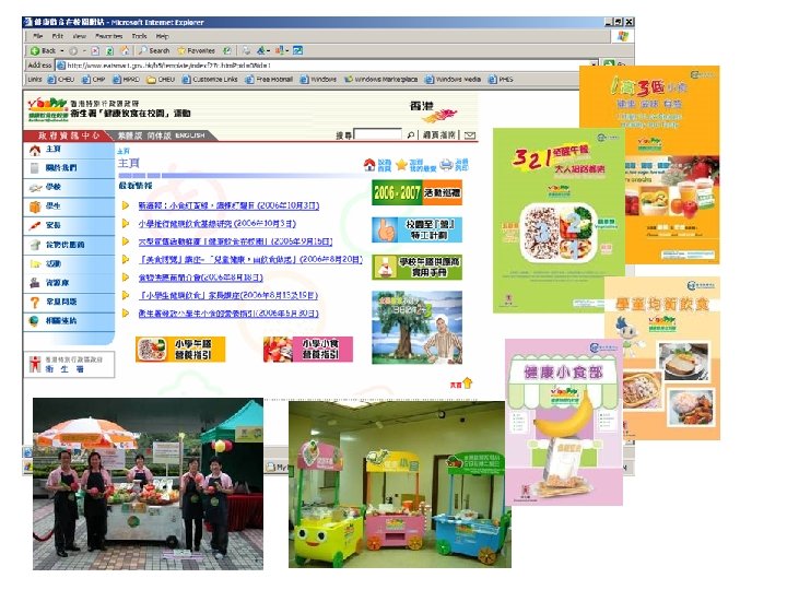 (1) (2) (3) (4) Formulating healthy eating policy Healthy eating surveillance in action – lunch Healthy eating surveillance in action – snacks DIY surveys of healthy eating environment and students’ dietary habits (5) Work together to promote lunch guideline policy (6) Tuck shop of health and nutrition (7) Red-yellow-green snacks zoning system (8) Give tuck shop a new face (9) Teacher-Student Fruit Day (10) ‘Choose the Smart and Healthy Lunch’ Campaign (11) Lunchtime broadcast on nutritional analysis of meal (12) A Lunchtime for Parents and Students (13) Visit to kitchens of school lunch suppliers