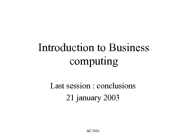Introduction to Business computing Last session : conclusions 21 january 2003 AC 2003