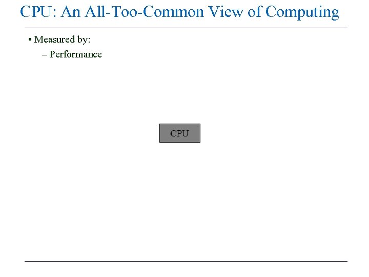 CPU: An All-Too-Common View of Computing • Measured by: – Performance