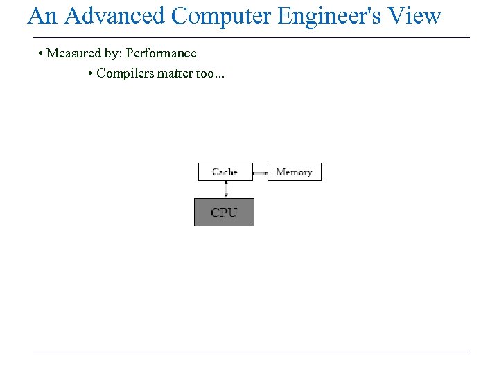 An Advanced Computer Engineer's View • Measured by: Performance • Compilers matter too. . .