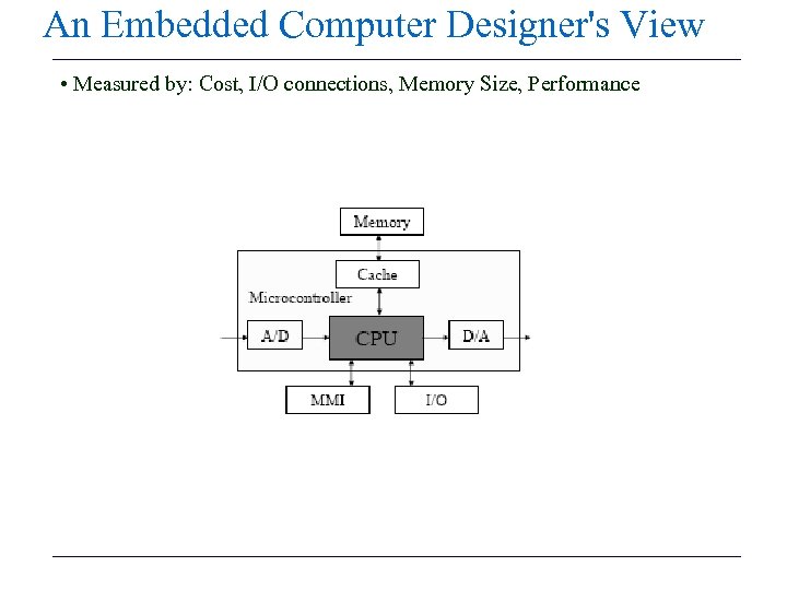 An Embedded Computer Designer's View • Measured by: Cost, I/O connections, Memory Size, Performance