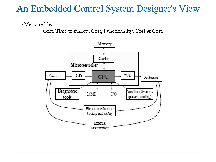An Embedded Control System Designer's View • Measured by: Cost, Time to market, Cost, Functionality, Cost & Cost.