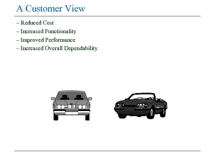 A Customer View – Reduced Cost – Increased Functionality – Improved Performance – Increased Overall Dependability