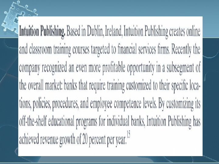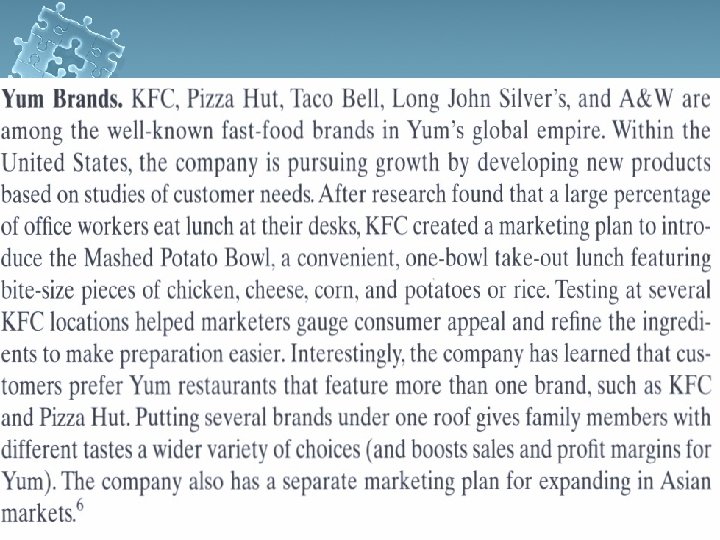 Research and Analyze the Current Situation l l l Starbucks (Joe magazine) Sony (New Competition from new rivals) Michaels Stores (Scrapbooking near term sales increasing 40% a year)