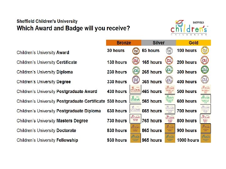 What do I do next? Step 1: Find the Learning Destinations! Visit the Sheffield Children’s University website for the list of Learning Destinations in Sheffield www. sheffield. gov. uk/cu Look for this logo when you are out and about!